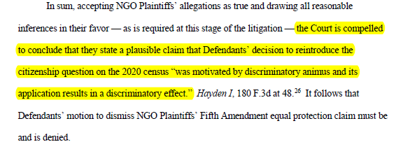 Based in part on this evidence, Judge Furman concluded that it is plausible that the Trump administration was motivated by discrimination against immigrants of color: